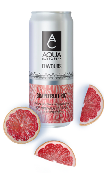 Apă minerală naturală carbogazoasă, aromată cu grapefruit roz — un duet curajos de prospețime și amar plăcut, direct din inima Carpaților.