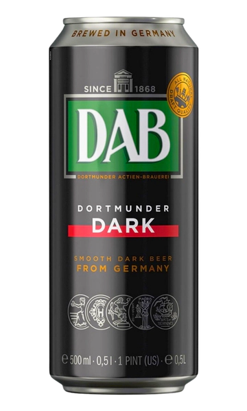 DAB Dark (Dortmunder Dark) este un lager brun închis, cu corp plin și aromă dominată de malțuri prăjite. Are note de caramel și ciocolată fină, o dulceață moderată și o amăreală discretă, pentru un final echilibrat și ușor de băut.